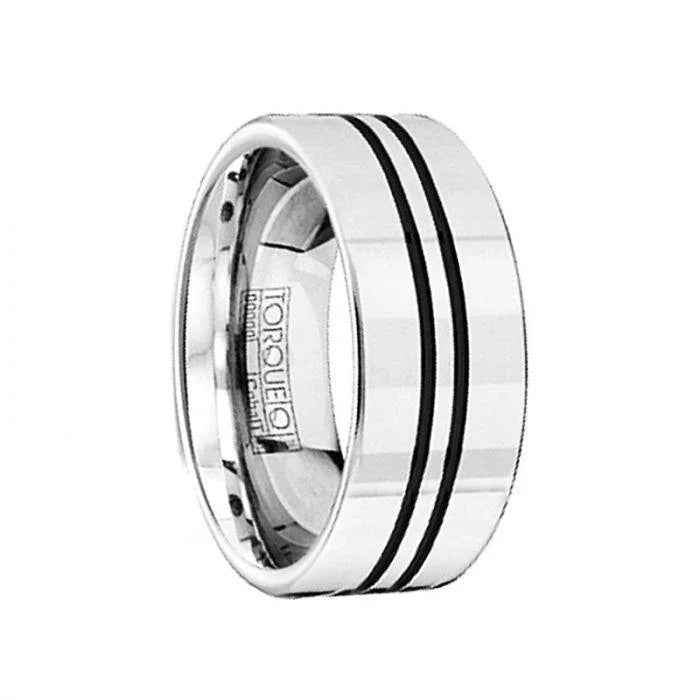 Polished Flat Style Cobalt Wedding Band with Black Enamel Inlay - 9mm
