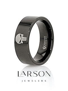 This is a precision crafted ring from our line of Comfort Fit Tungsten Carbide Rings. This ring has the Punisher symbol engraved on the ring. The perfect gift for any fan. You can also have any of Punisher quotes engraved on the inside of the ring. Simply type this into the engraving box to add it to your ring.