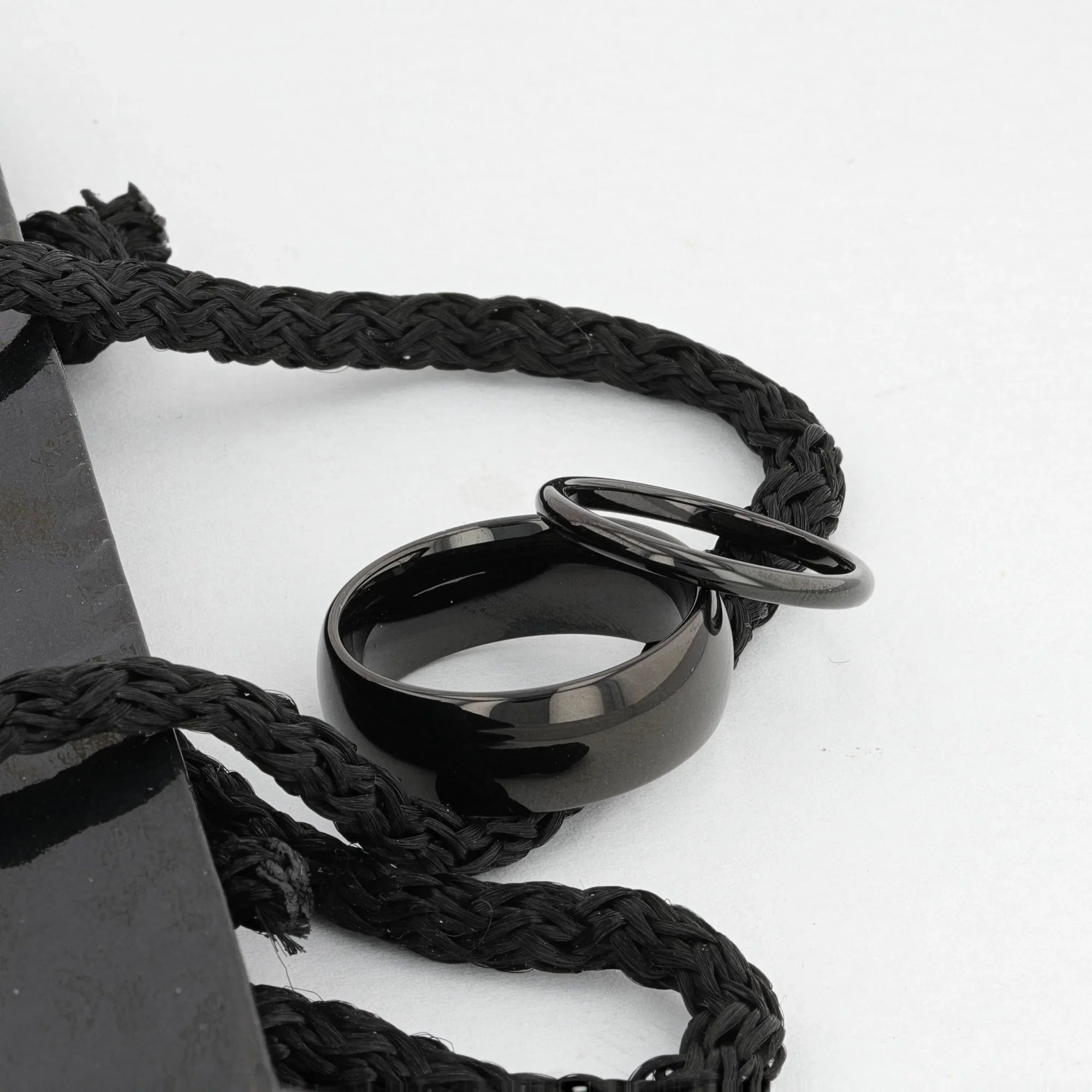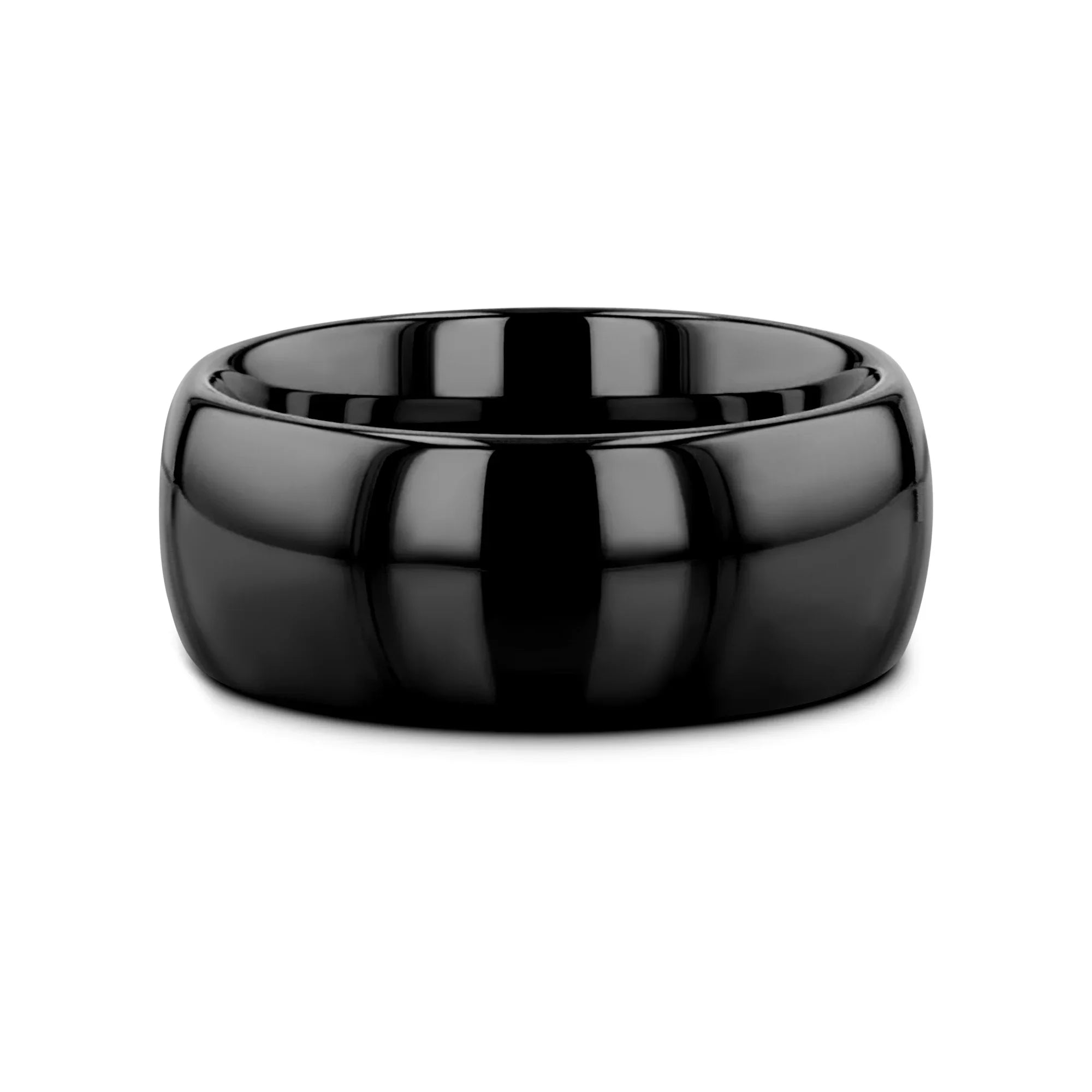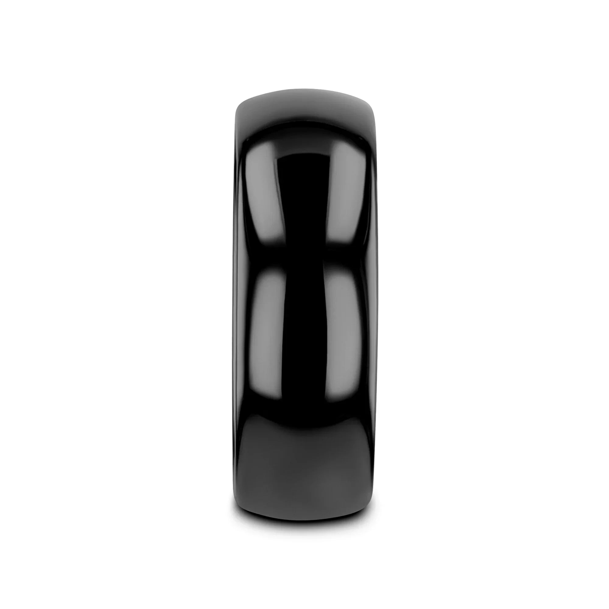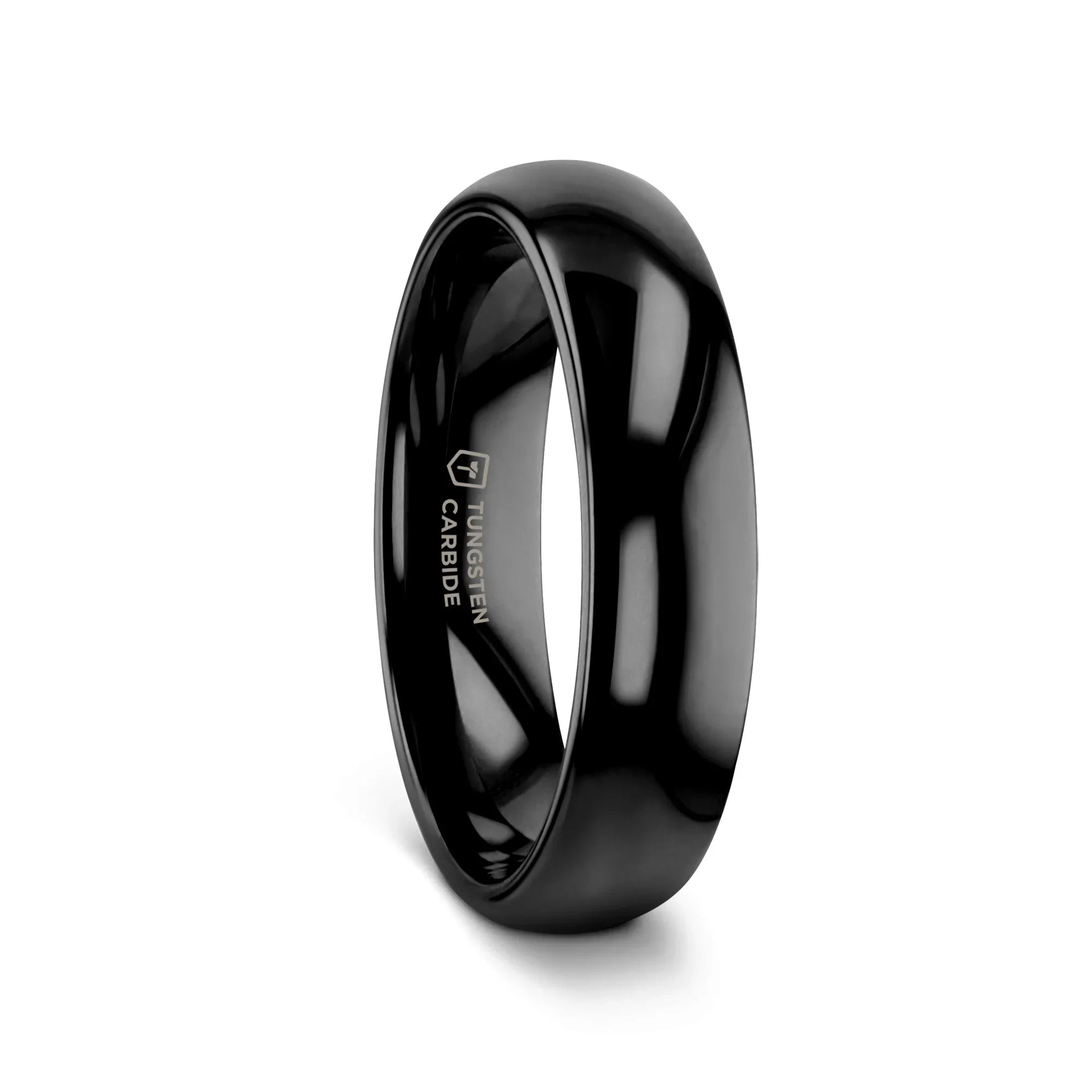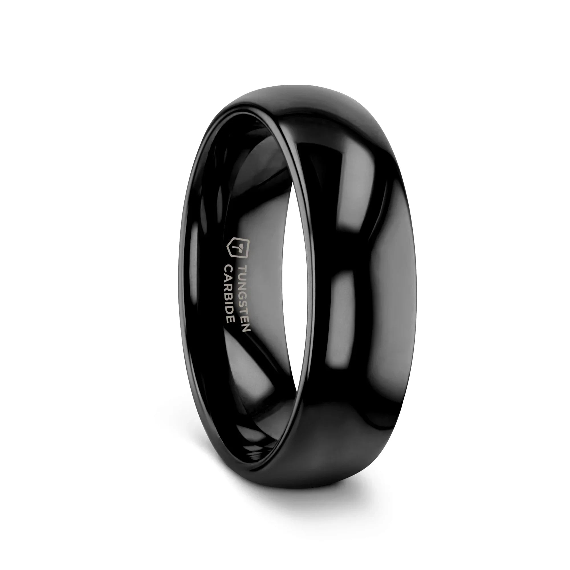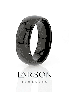 The classic domed style Black Tungsten Carbide wedding band by Thorsten has a smooth deep black onyx like finish giving it a beautiful lustrous dark sheen and can be worn as a wedding band or promise ring.