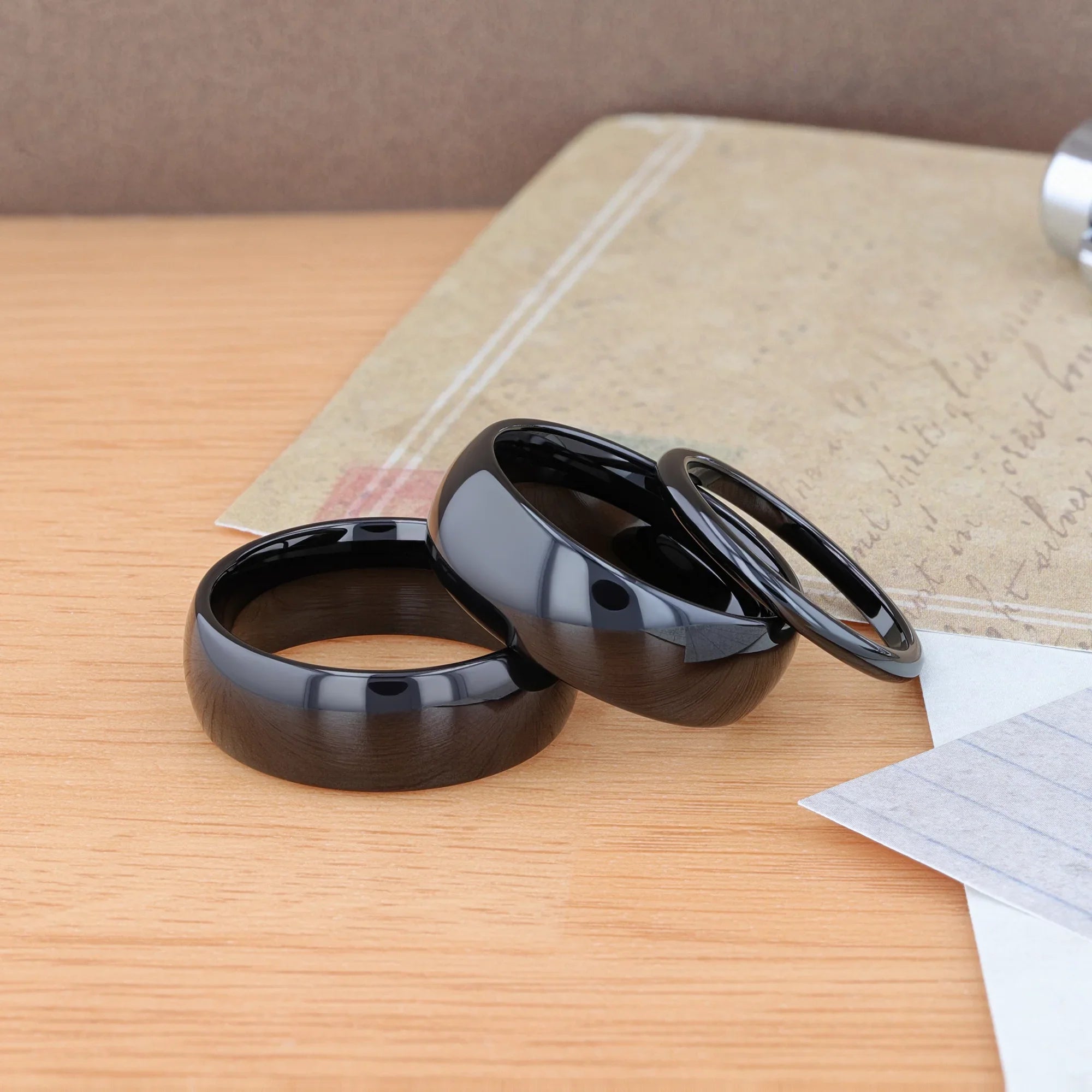 RAVEN Domed Black Tungsten Wedding Band - 2mm - 12mm
