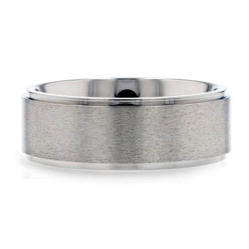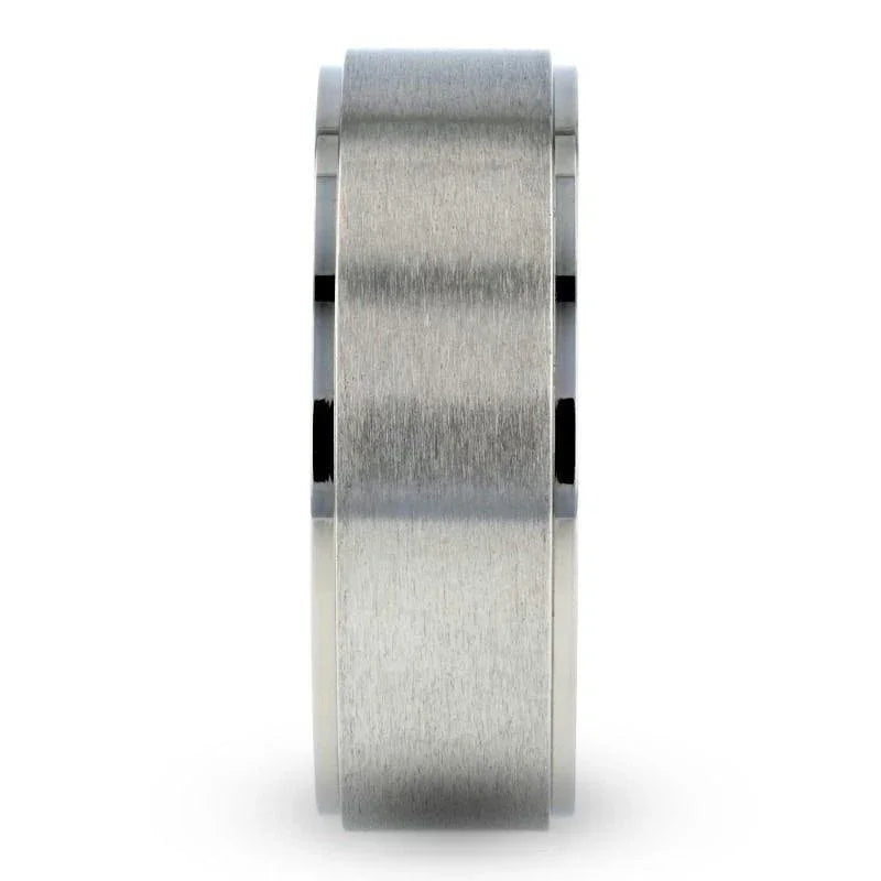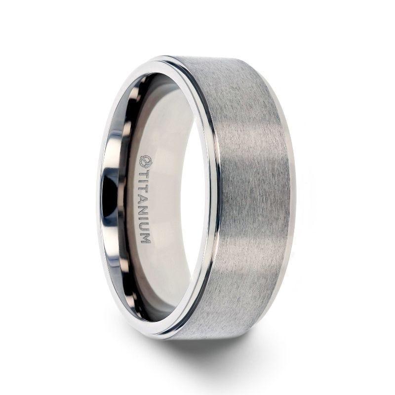 RHINOX Brushed Raised Center Men’s Titanium Wedding Ring with Polished Step Edges - 8mm