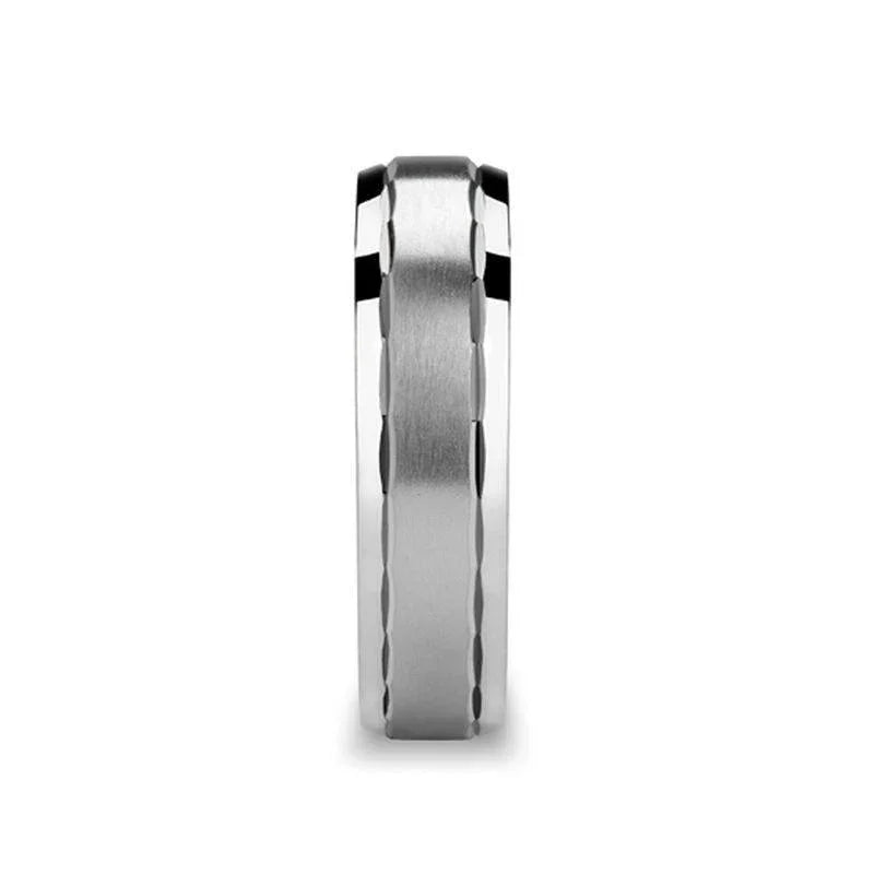 Novell Offset Carved Facets Silver Wedding Ring - 5mm - 8mm