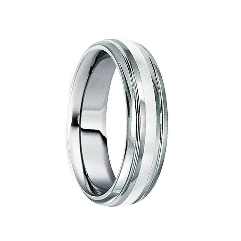 SEPTIMIUS Platinum Inlaid Tungsten Wedding Band with Dual Grooves & Polished Finish - 6mm