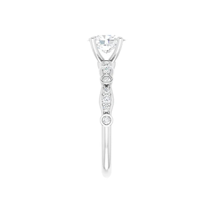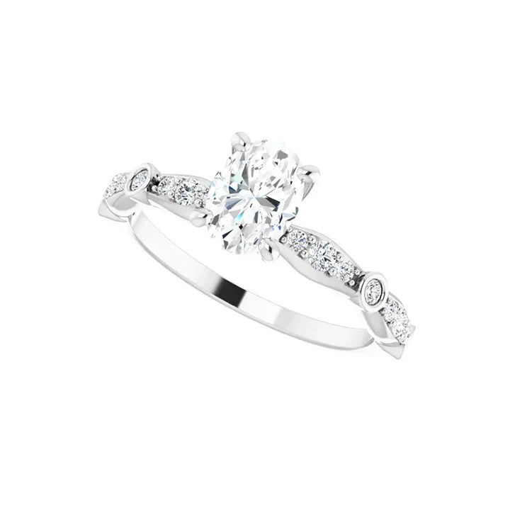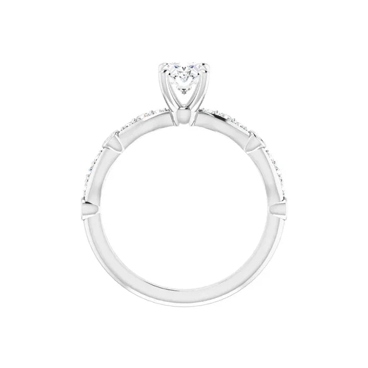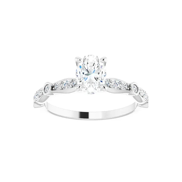 This SOLANA Silver Oval Lab Grown Diamond Engagement Ring boasts a modern polished finish, beautifully complemented by a lab grown diamond. Crafted with silver, this ring offers a fantastic combination of style and affordability. Made by expert manufacturer Stuller, this ring is sure to amaze. The center diamond is certified for authenticity by a third-party grading laboratory and is engraved with the certificate number.