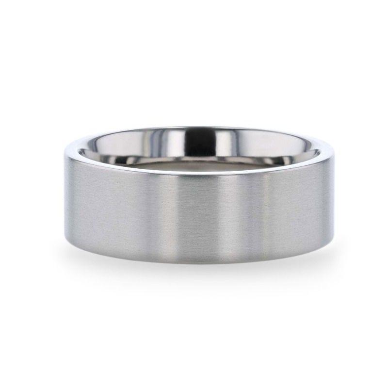 SOLAR Flat Profile Brushed Finish Men’s Titanium Wedding Band - 6mm and 8mm