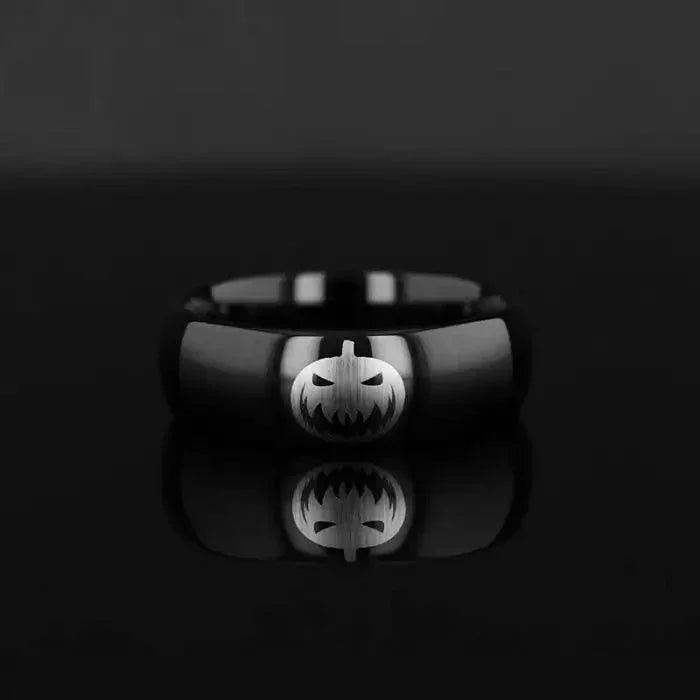 Spooky Evil Halloween Jack-O-Lantern Engraved Domed Black Tungsten Ring (Raven) - 4mm - 12mm