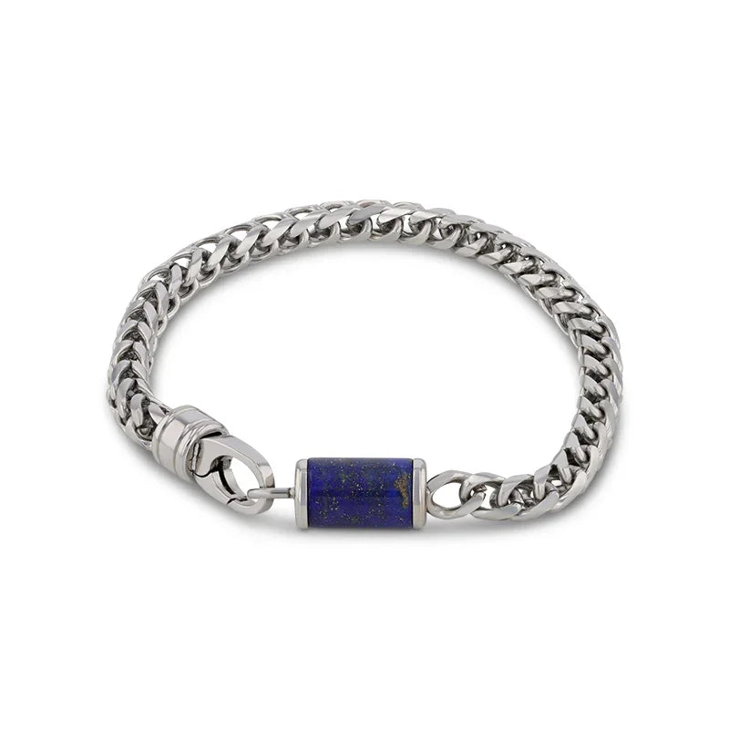 Indulge in the allure of our Stainless Steel Bracelet with Lapis Inlay and experience the perfect blend of classic charm and contemporary style. Make it a staple in your jewelry collection and a testament to your impeccable taste.