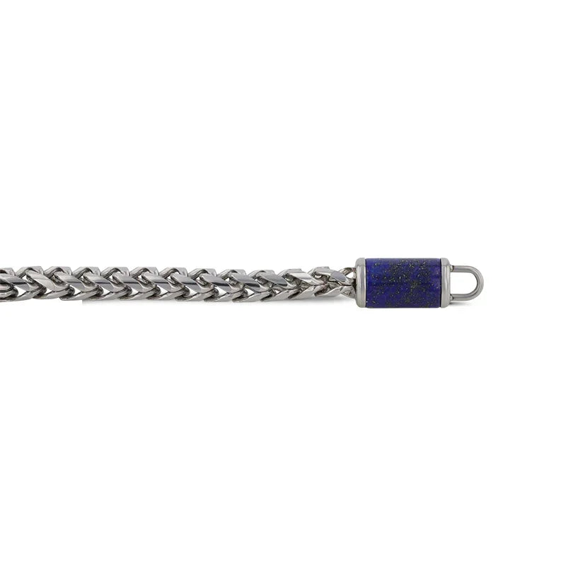 Stainless Steel Bracelet With Lapis Inlay - 9 Inch