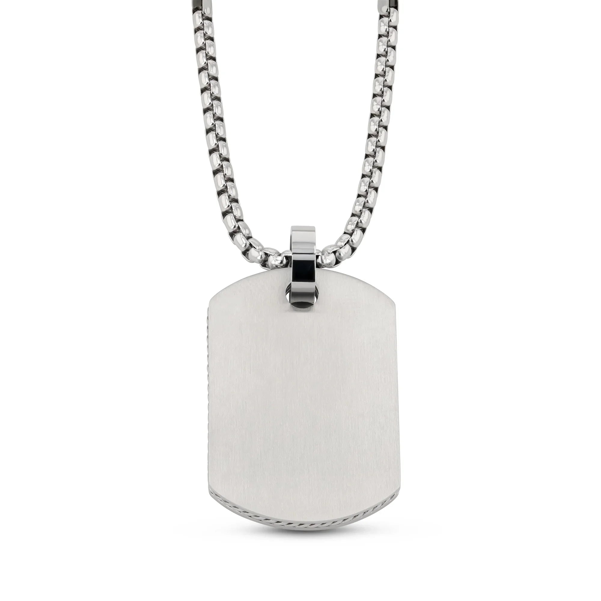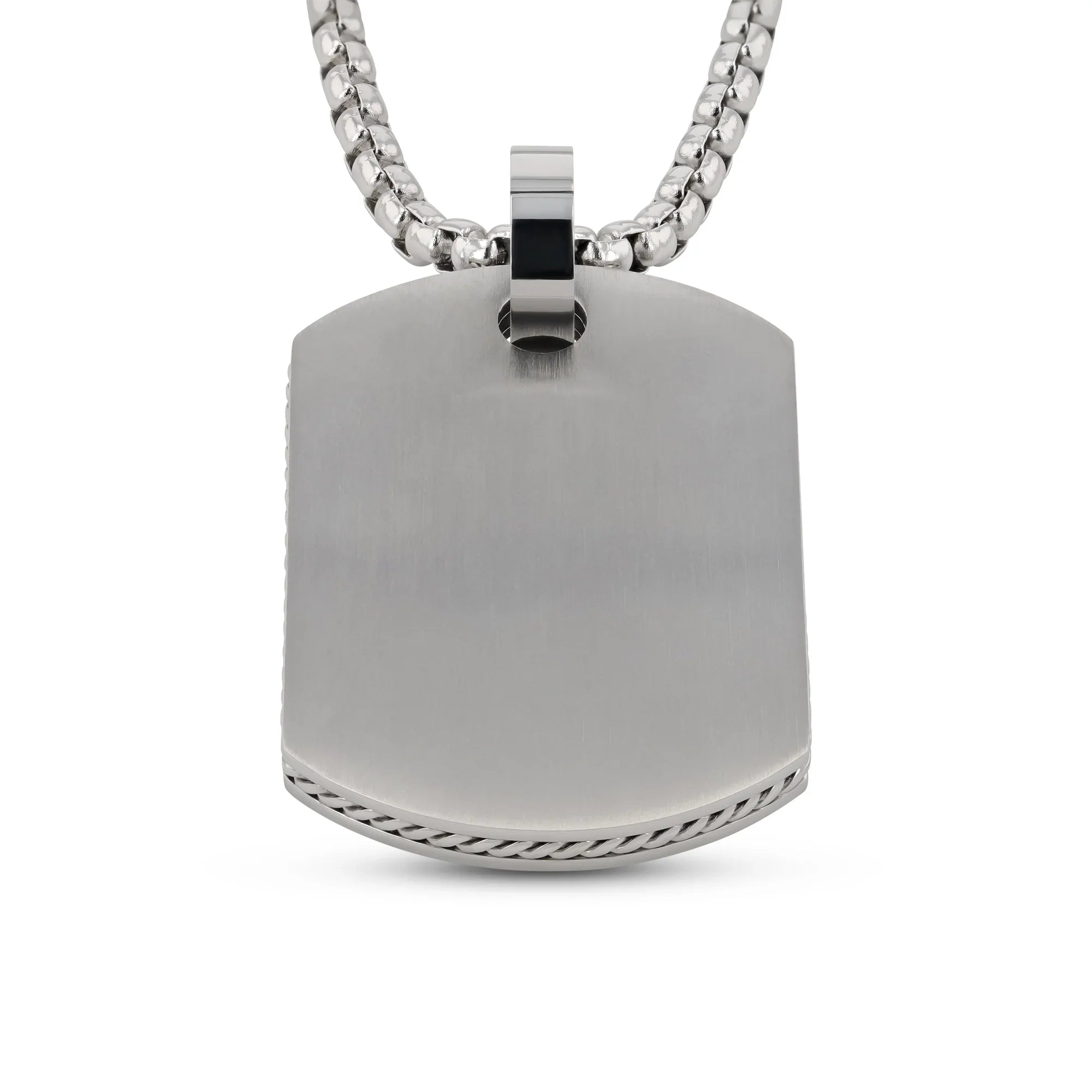 This sleek stainless steel dog tag pendant offers a bold look that pairs well with a variety of styles. Crafted from durable stainless steel, it includes a matching 22-inch chain for effortless wear, making it the perfect accessory for daily use or special occasions.