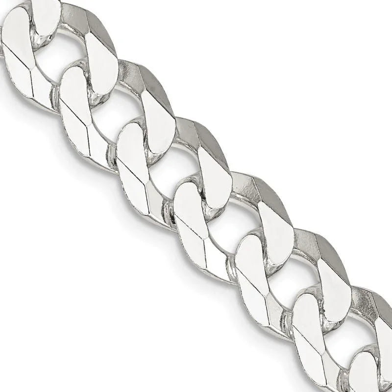 Sterling Silver 10.6mm Beveled Curb Chain Necklace