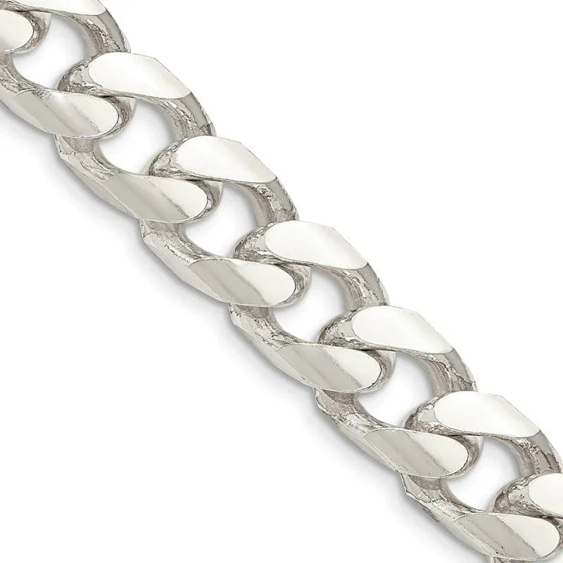 Sterling Silver 11mm Domed w/ Side D/C Curb Chain Necklace