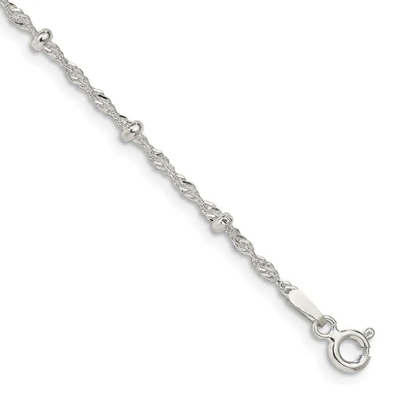 Sterling Silver 2.5mm Singapore w/ Beads Chain Bracelet