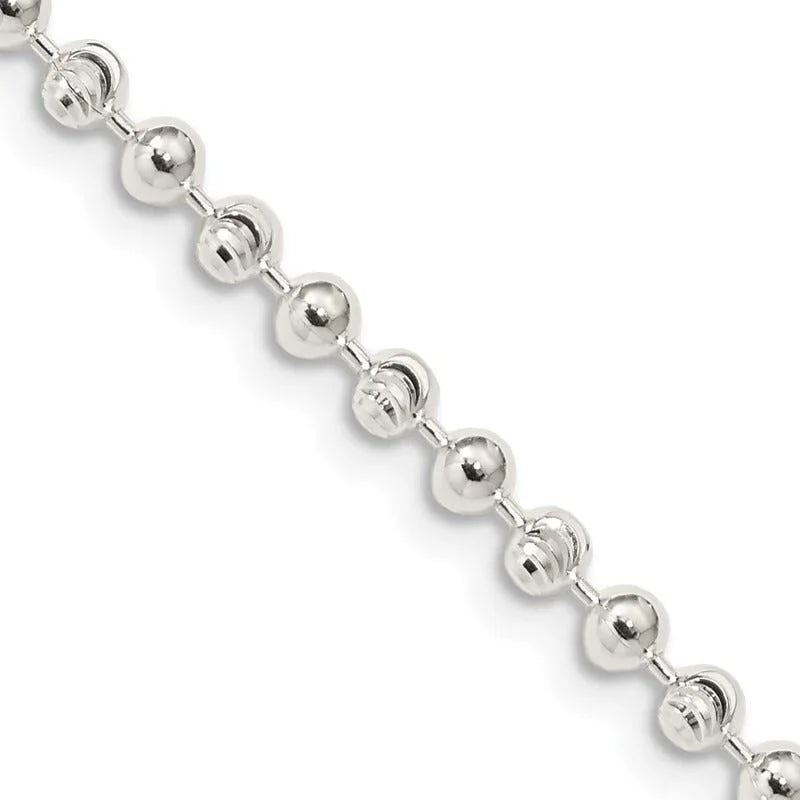 Sterling Silver 3mm Fancy Beaded Chain Necklace