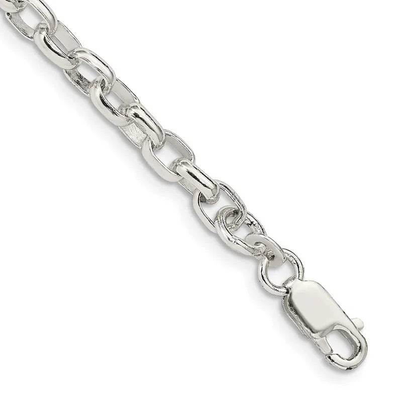 Sterling Silver 4.4mm Oval Fancy Rolo Chain Bracelet