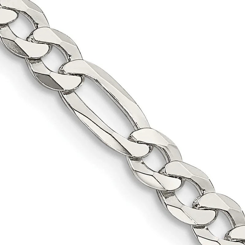 Sterling Silver 9.5mm Lightweight Flat Figaro Chain Necklace