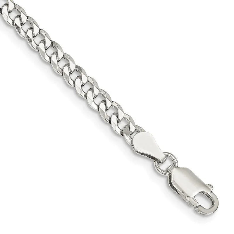 Sterling Silver 4mm Beveled Curb Chain Bracelet