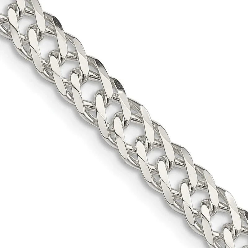 Sterling Silver 5.25mm 6 Side D/C Flat Double Curb Chain Necklace