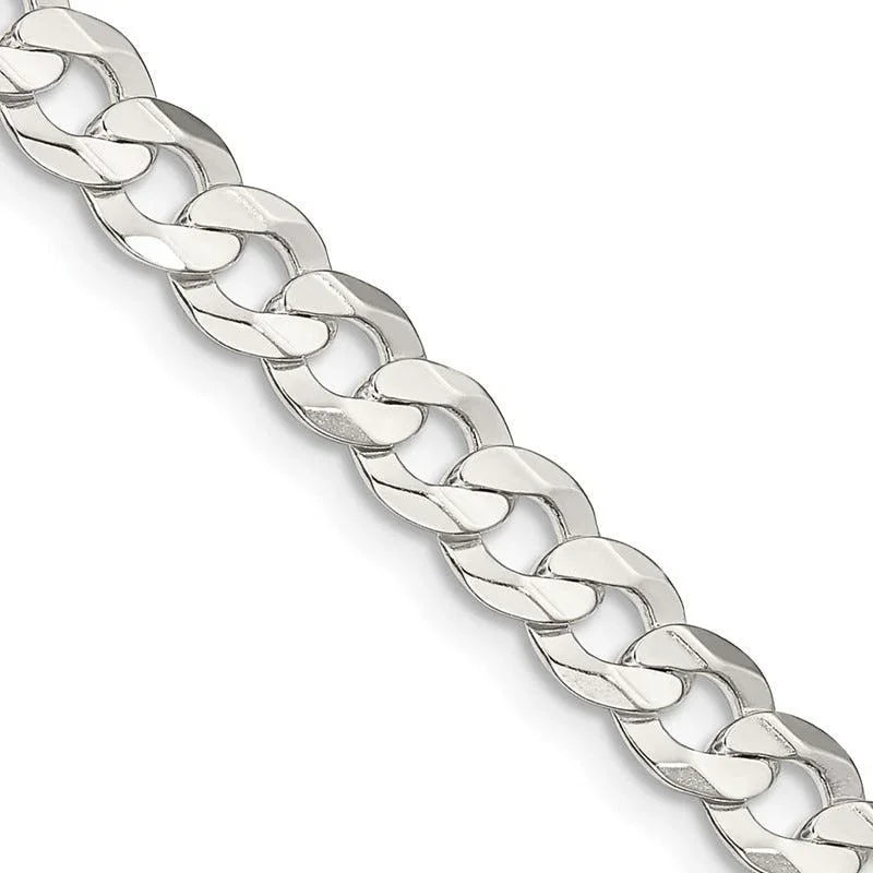 Sterling Silver 5.65mm Concave Beveled Curb Chain Necklace