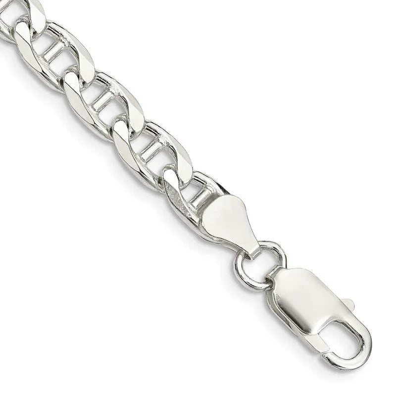 Sterling Silver 6.5mm Flat Cuban Anchor Chain Bracelet