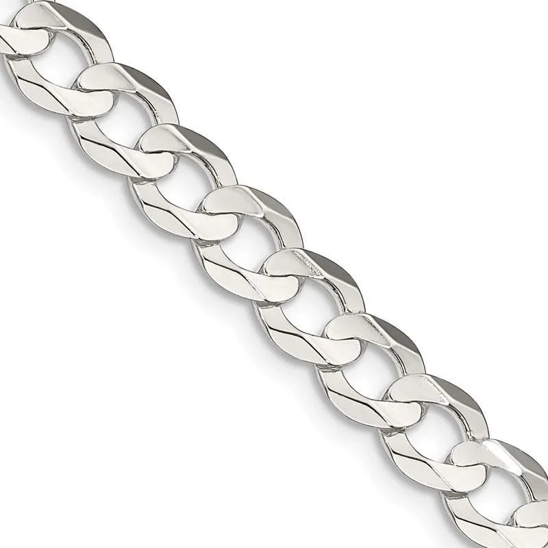 Sterling Silver 6.75mm Concave Beveled Curb Chain Necklace