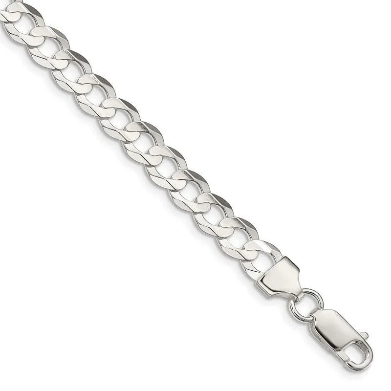 Sterling Silver 6.75mm Concave Beveled Curb Chain Bracelet