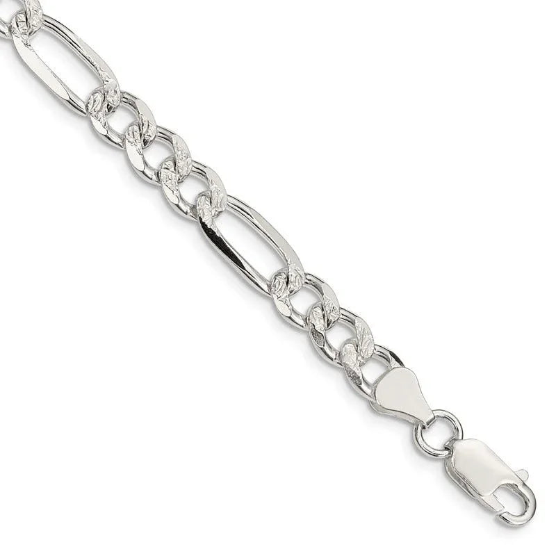 Sterling Silver 7.25mm Pave Flat Figaro Chain Bracelet