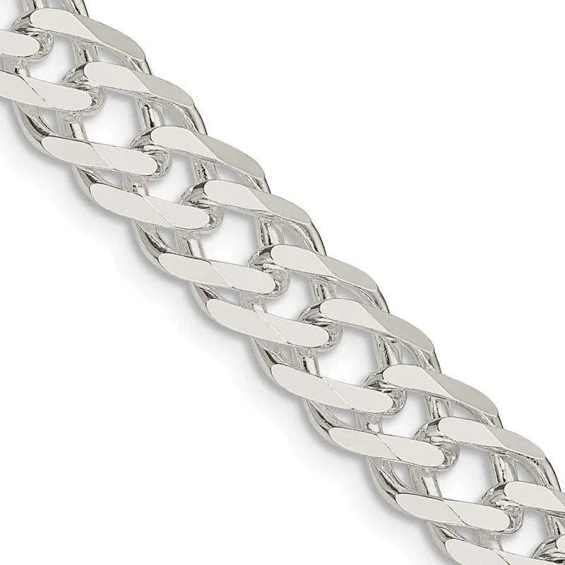 Sterling Silver 7.75mm 6 Side D/C Flat Double Curb Chain Necklace