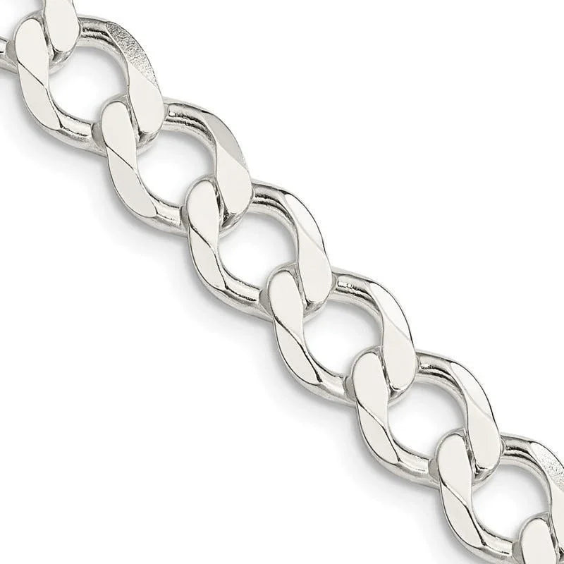 Sterling Silver 8.1mm Semi-solid Flat Curb Chain Necklace