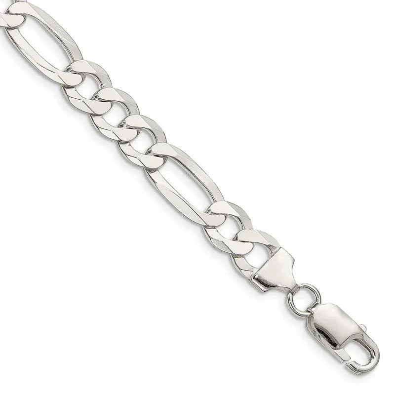 Sterling Silver 8.5mm Lightweight Flat Figaro Chain Bracelet