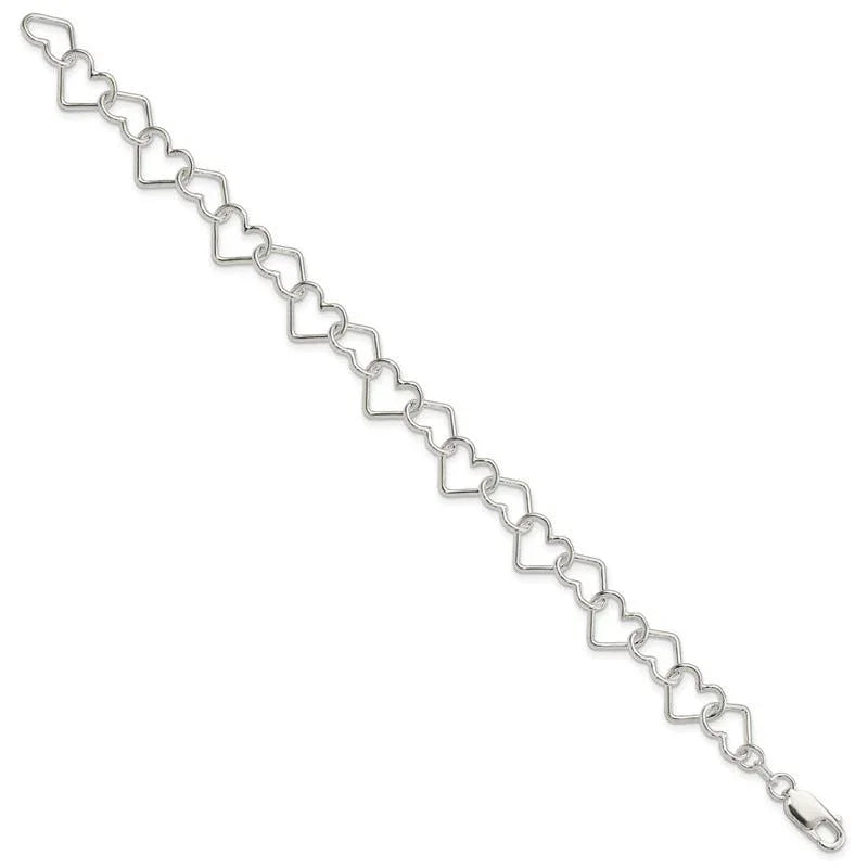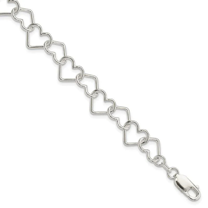 Sterling Silver 8inch Polished Fancy Large Heart Link Bracelet