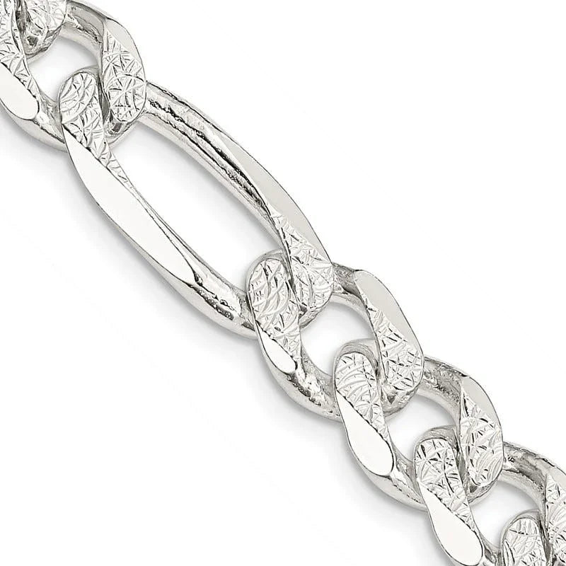 Sterling Silver 9.5mm Pav‚ Flat Figaro Chain Necklace
