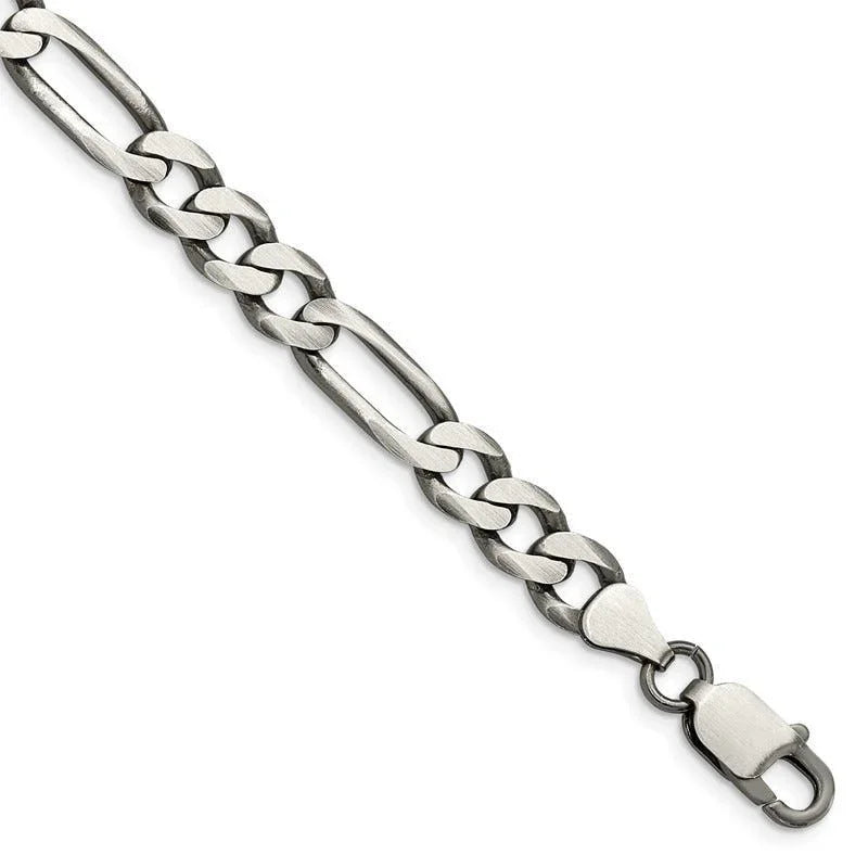 Sterling Silver Antiqued 7.5mm Figaro Chain Bracelet
