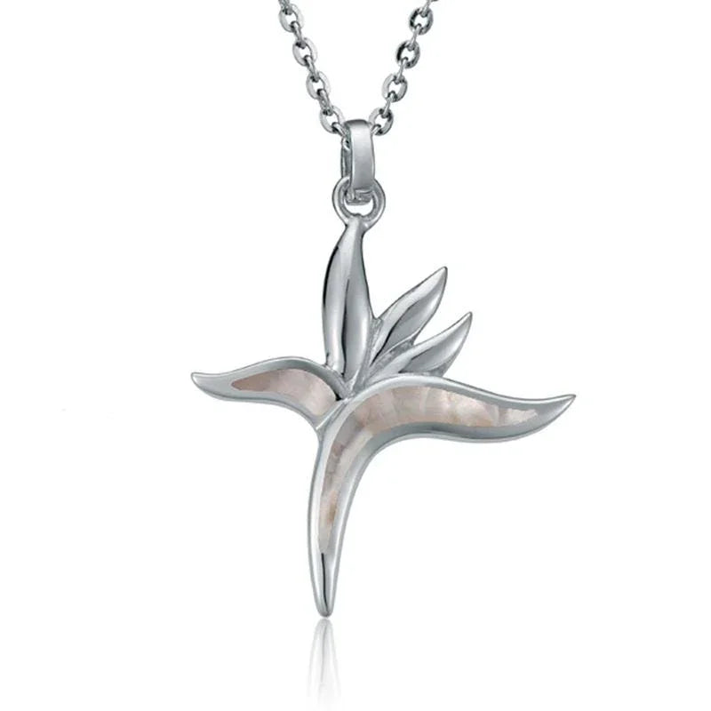 Sterling Silver Birds of Paradise Necklace with White Mother of Pearl Inlay