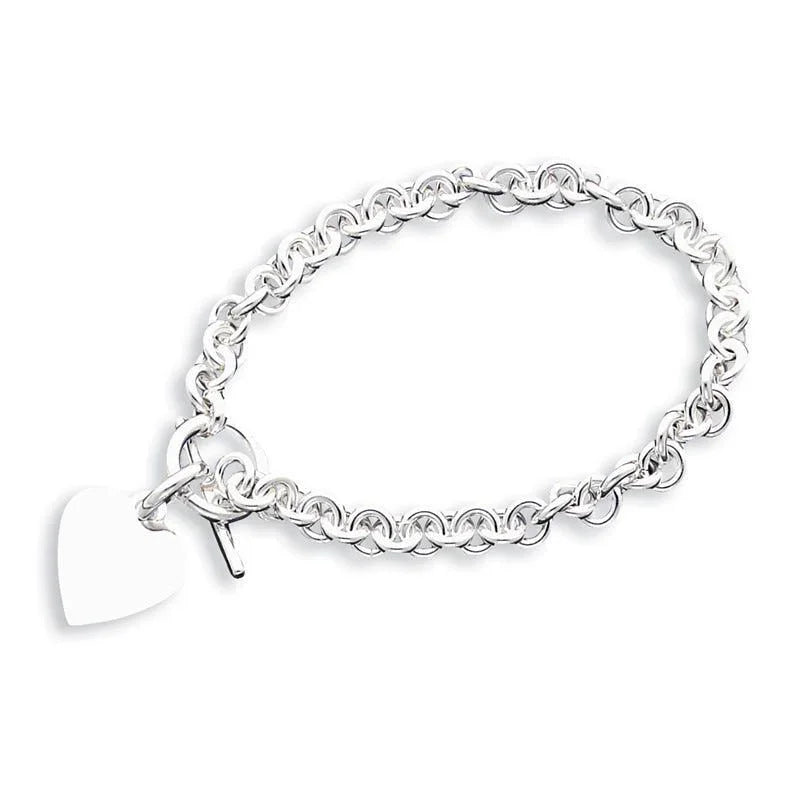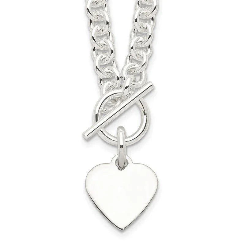 Sterling Silver Engraveable Heart Disc on Fancy Link Toggle 18in Necklace