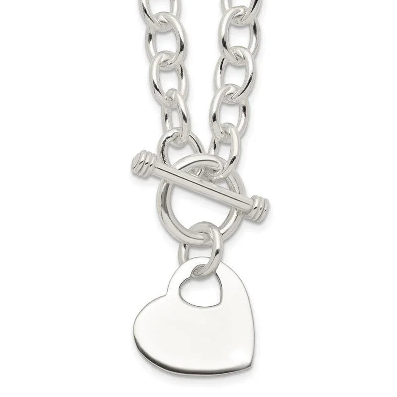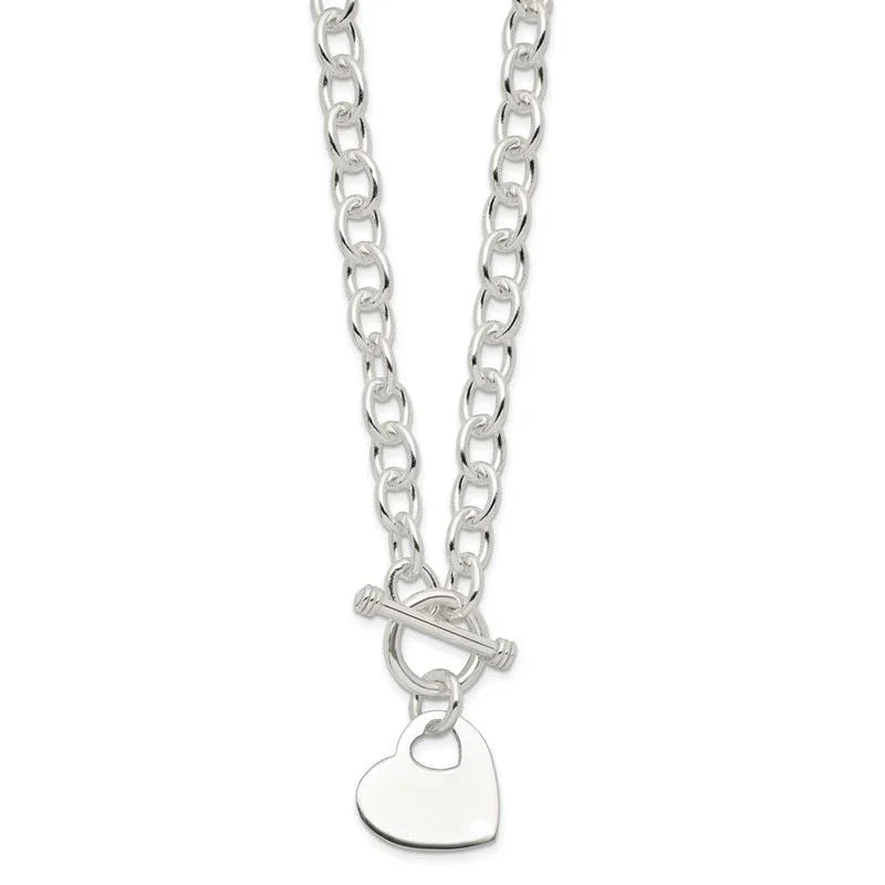 Sterling Silver Engraveable Heart Disc on Fancy Link Toggle Necklace