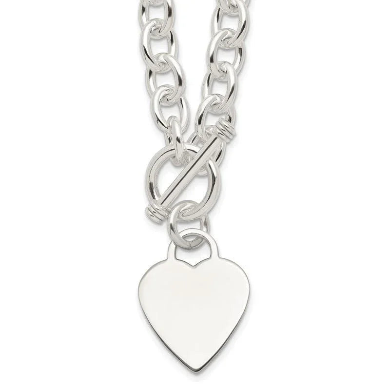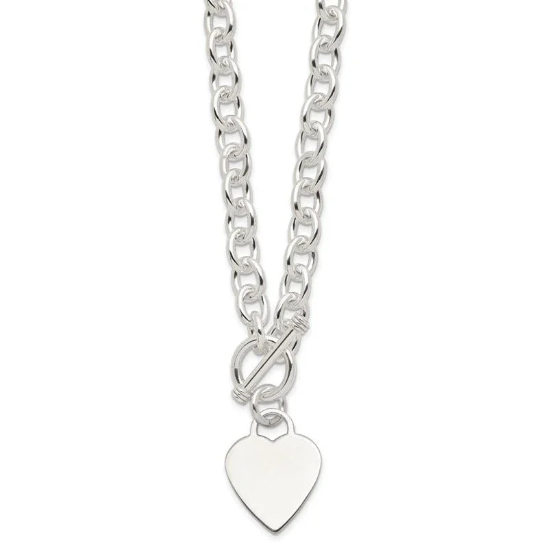 Sterling Silver Engraveable Heart Fancy Link Toggle Necklace