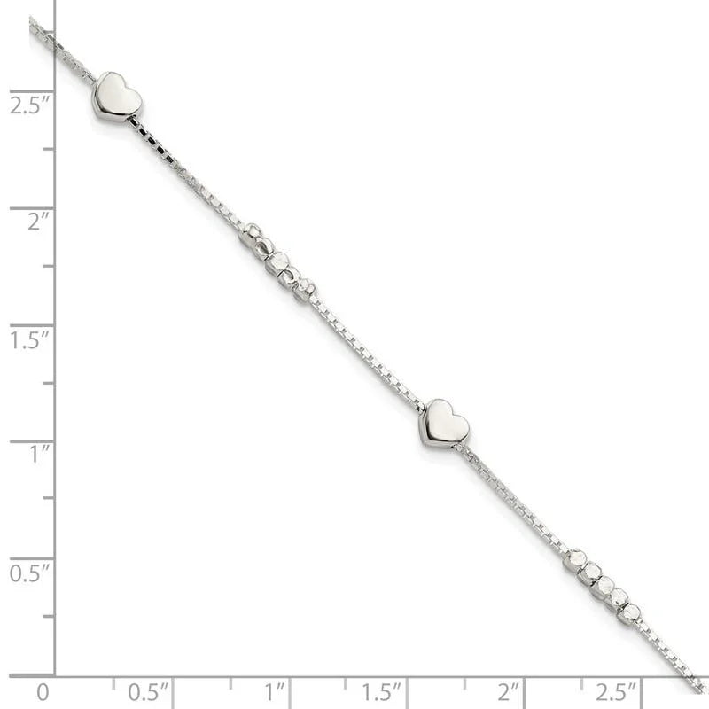 Sterling Silver Fancy Bead & Heart w/ 1in ext Bracelet