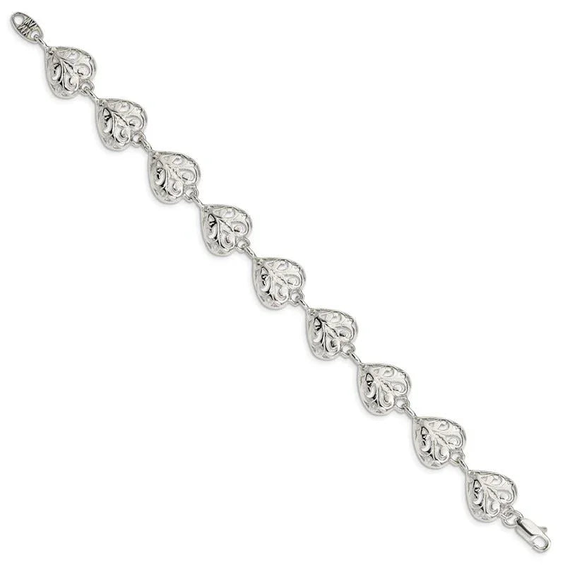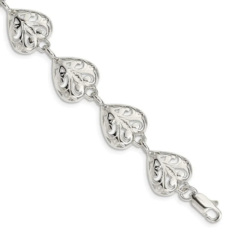 Sterling Silver Fancy Filigree Heart 7 inch Bracelet