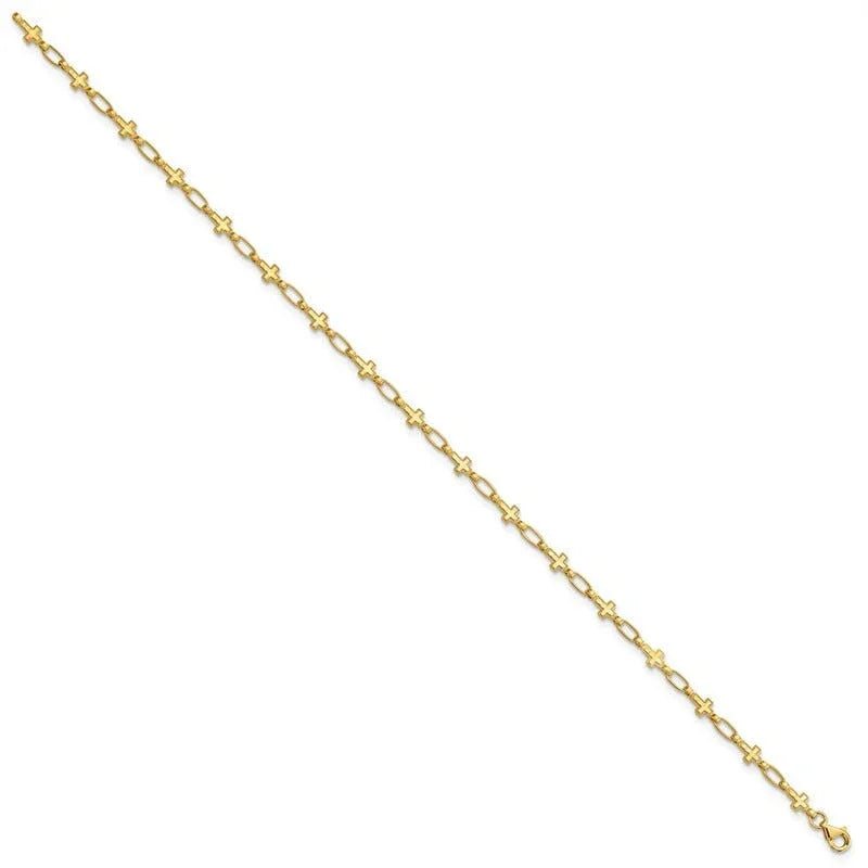 Sterling Silver Gold-tone Cross 9.75in Anklet