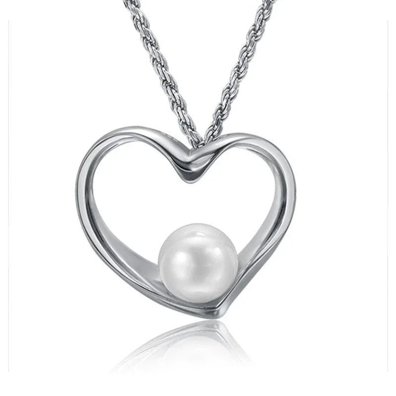 Sterling Silver Heart Shaped Pendantwith White Pearl