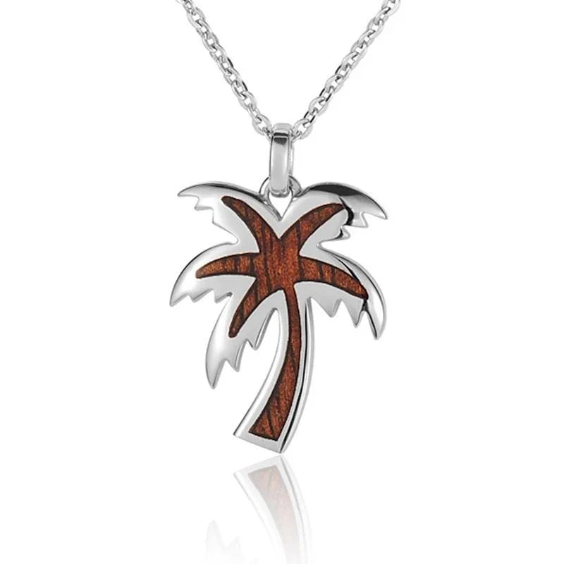 Sterling Silver Koa Wood Jagged Edge Palm Tree Pendant18" Necklace