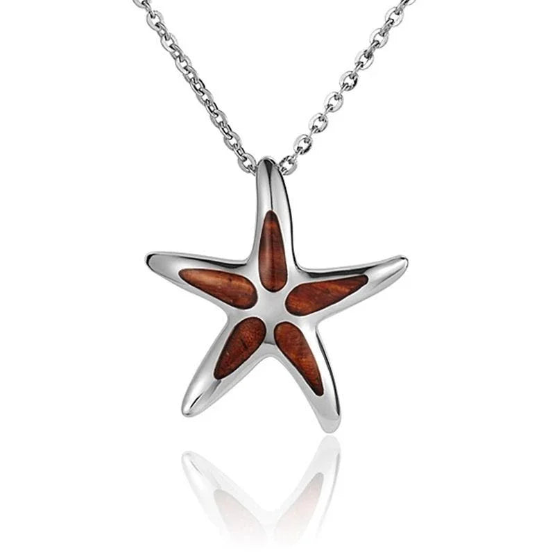 Sterling Silver Koa Wood Multi-Inlay Starfish Pendant18" Necklace