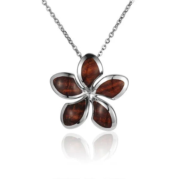 Sterling Silver Koa Wood Stylish Plumeria Flower Pendant 18" Necklace