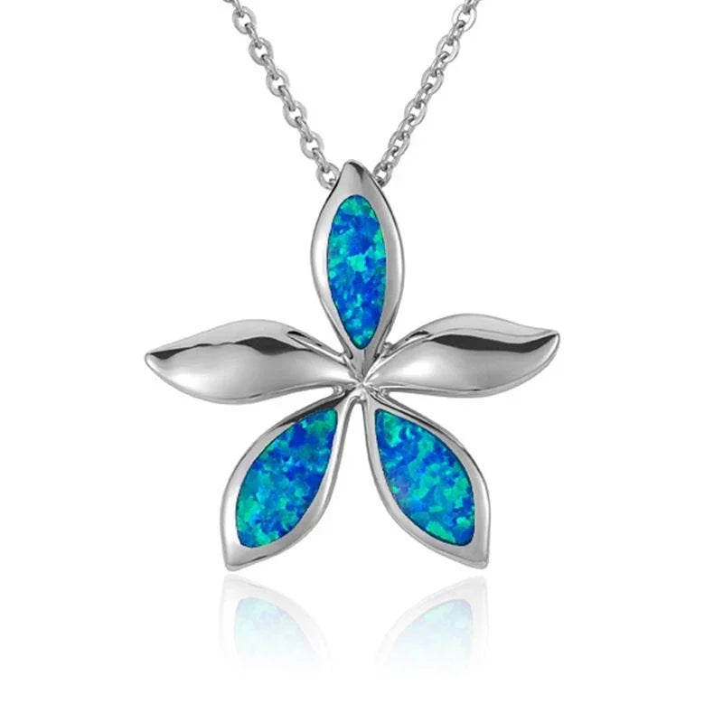 Sterling Silver Plumeria Pendantwith Opal Inlay
