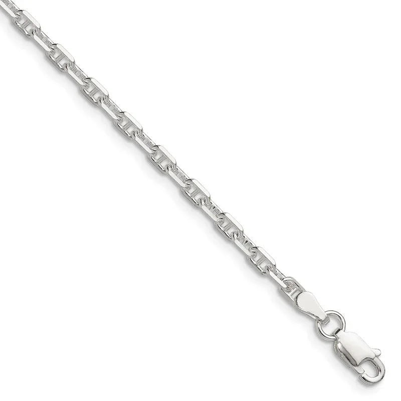 Sterling Silver Polished and D/C 3mm Marine Link Chain Bracelet