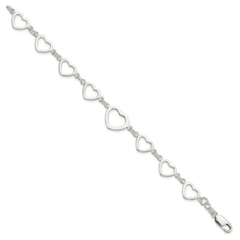 Sterling Silver Polished Heart Fancy Link Bracelet