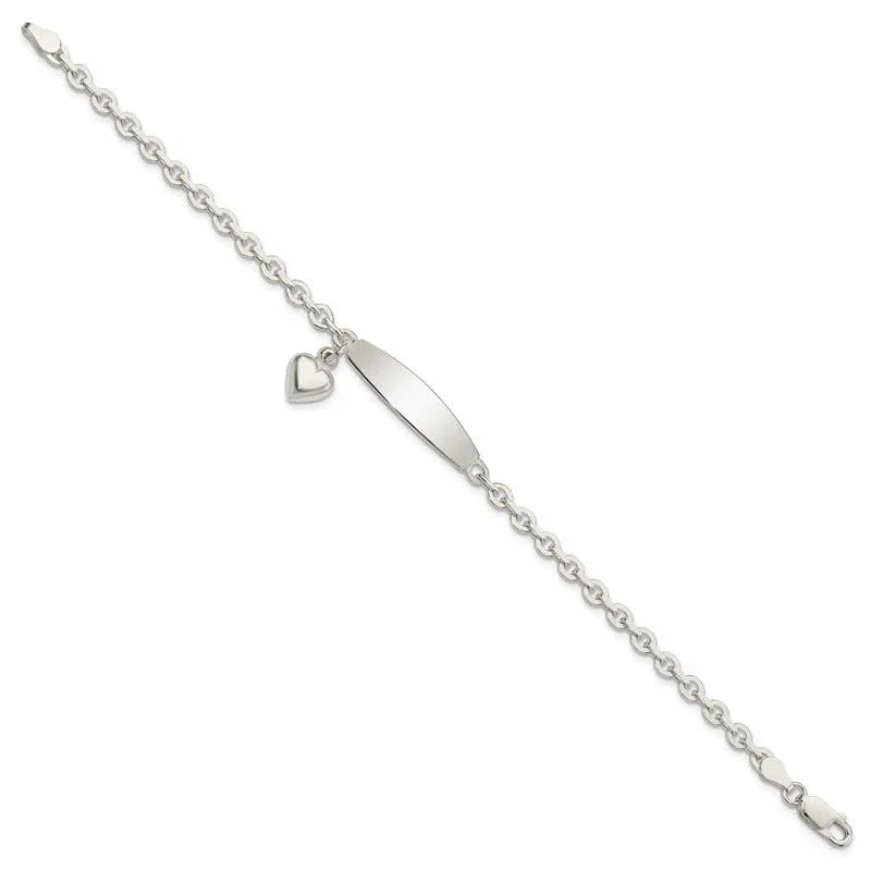 Sterling Silver Polished Rolo Link ID Heart Dangle Bracelet