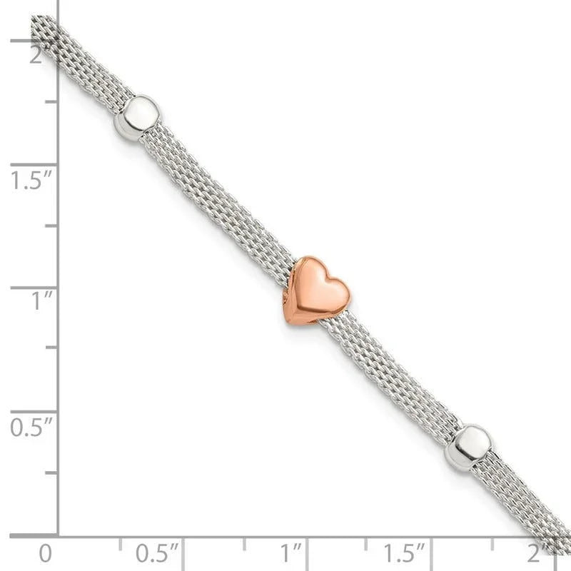 Sterling Silver Polished Rose-plated Heart Bracelet