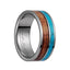 Titanium Wedding Band Pink Ivory Wood/Turquoise Inlay & Polished Edge - 8mm