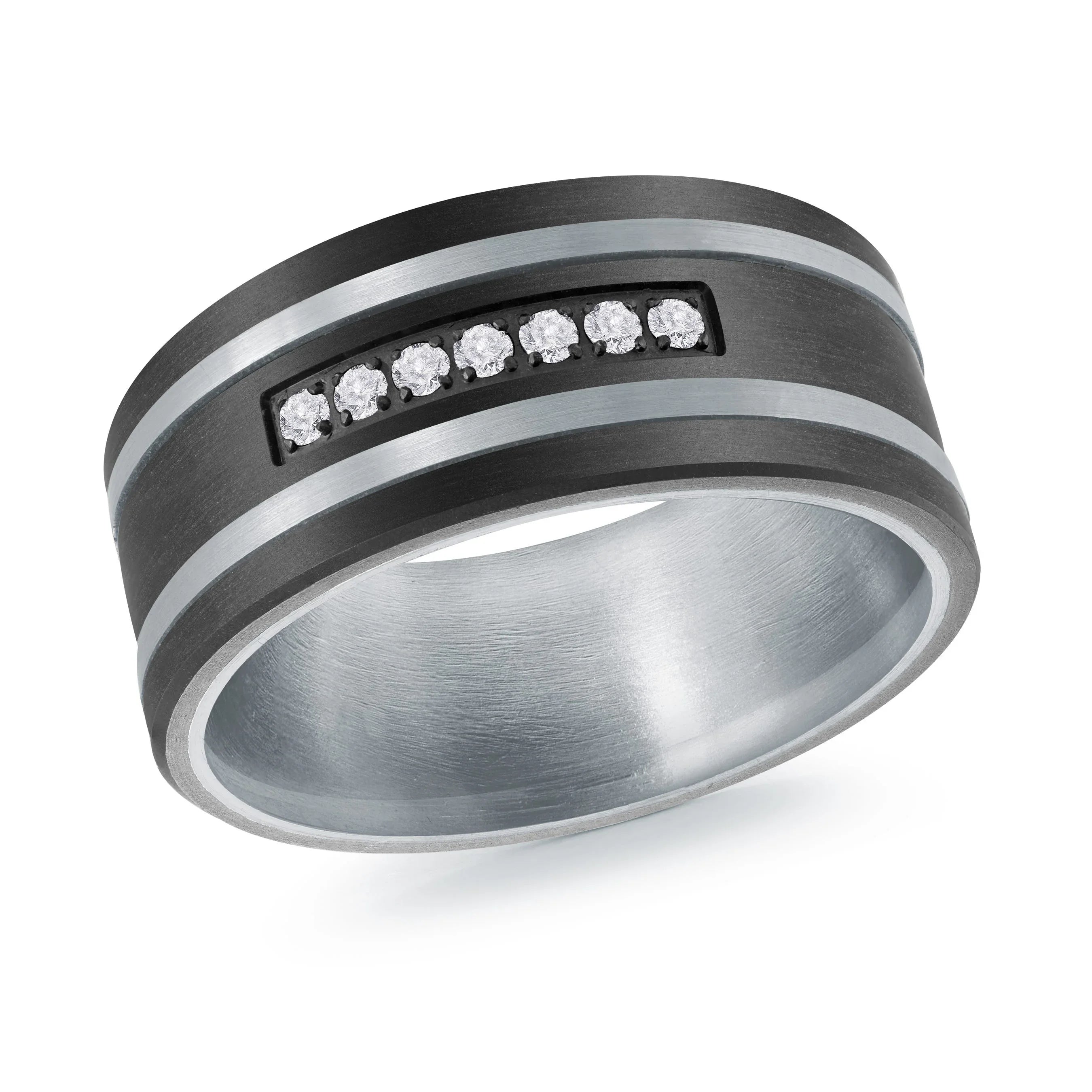 Titanium with Carbon Fiber and 14K White Gold Ring from the Titanium Collection by Malo